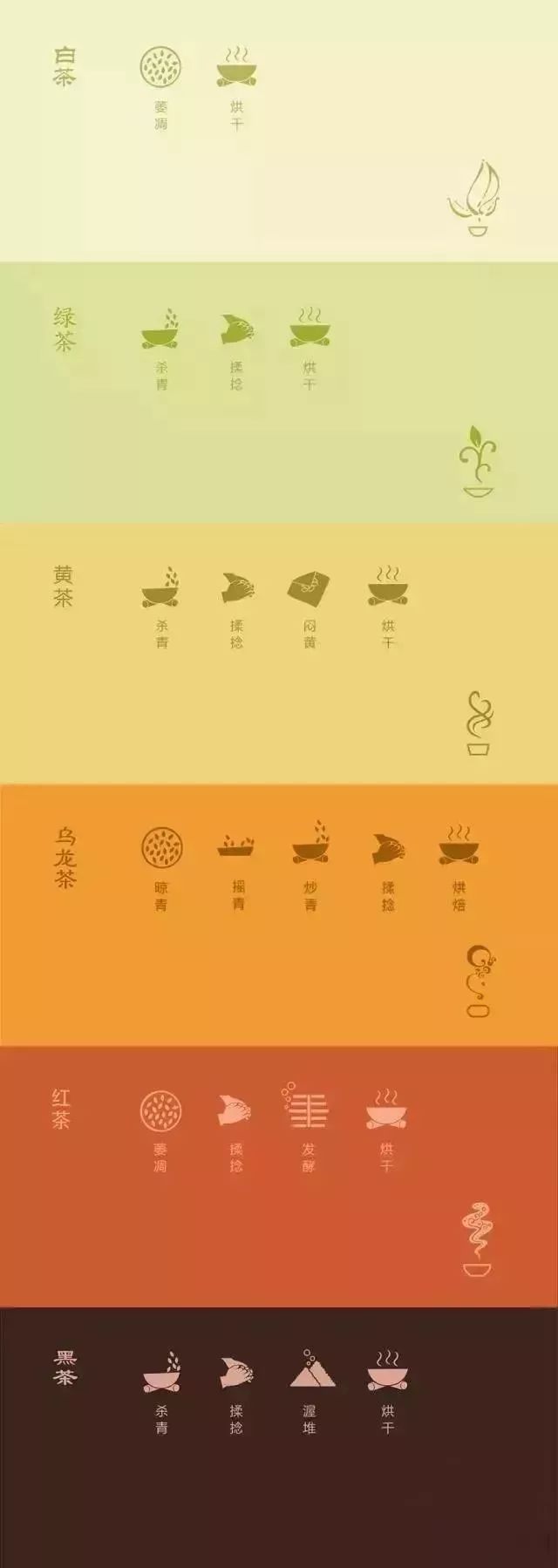 上圖是六大茶類的制作工藝,而事實(shí)上,六大茶類各有一道關(guān)鍵工序,這道關(guān)鍵工序是正是六大茶類分類的標(biāo)準(zhǔn)來(lái)源。
