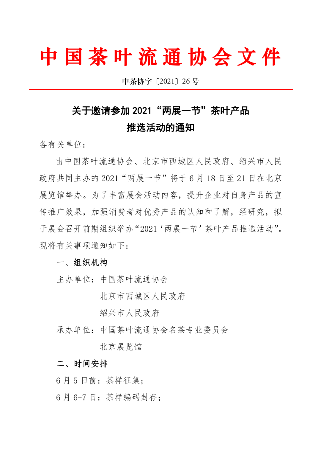 中國茶葉流通協(xié)會(huì)關(guān)于邀請(qǐng)參加2021“兩展一節(jié)”茶葉產(chǎn)品推選活動(dòng)的通知