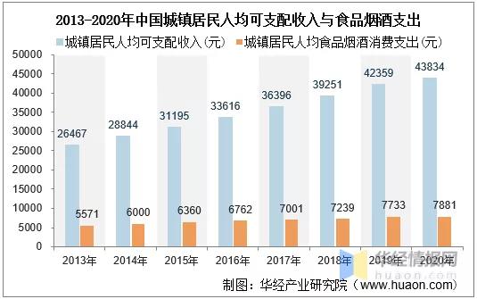 隨著我國經(jīng)濟(jì)持續(xù)向好發(fā)展,城鎮(zhèn)居民人均收入與消費水平持續(xù)提升。2013-2020年中國城鎮(zhèn)居民人均可支配收入由26467元增長至43834元,食品煙酒消費支出由5571元增長至7881元??焖僭鲩L的消費能力帶來多元化、品質(zhì)化的消費升級需求,利好整體大消費行業(yè),成為支撐新茶飲行業(yè)消費的基本盤。