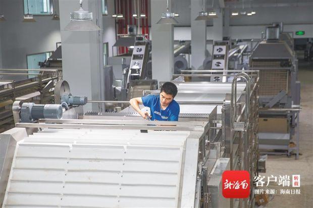 6月16日,在海墾茶業(yè)生態(tài)科技園(一期)項目現(xiàn)場,工人們正在抓緊安裝、調(diào)試剛進場的紅茶、綠茶生產(chǎn)線。