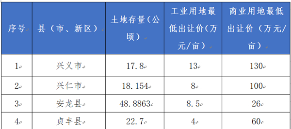 黔西南州部分生產(chǎn)要素信息