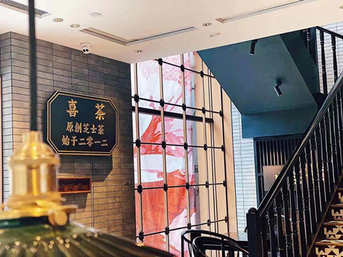 喜茶起源于江門(mén),成長(zhǎng)于廣東。將新茶風(fēng)帶給世界的同時(shí),喜茶仍在回頭凝視自身中流淌的廣府文化基因。喜茶整合永慶坊傳統(tǒng)建筑與廣東茶文化特點(diǎn),讓新與舊達(dá)到平衡,使店面擁有現(xiàn)代藝術(shù)也有傳統(tǒng)老廣氣息,并將老廣州元素融入空間:三雕一彩一繡,青石磚,銅板浮雕,滿(mǎn)洲窗、趟櫳門(mén)、騎樓街,讓嶺南文化在新式茶文化中靈動(dòng)延續(xù)。