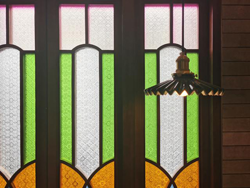 滿(mǎn)洲窗是嶺南建筑的一個(gè)重要符號(hào),彩色玻璃篩取入室光線,同時(shí)窗格演變?yōu)檠b飾紋樣,透過(guò)海棠花玻璃,物體的輪廓逐漸消散,斑駁迷離而絢麗散碎。
